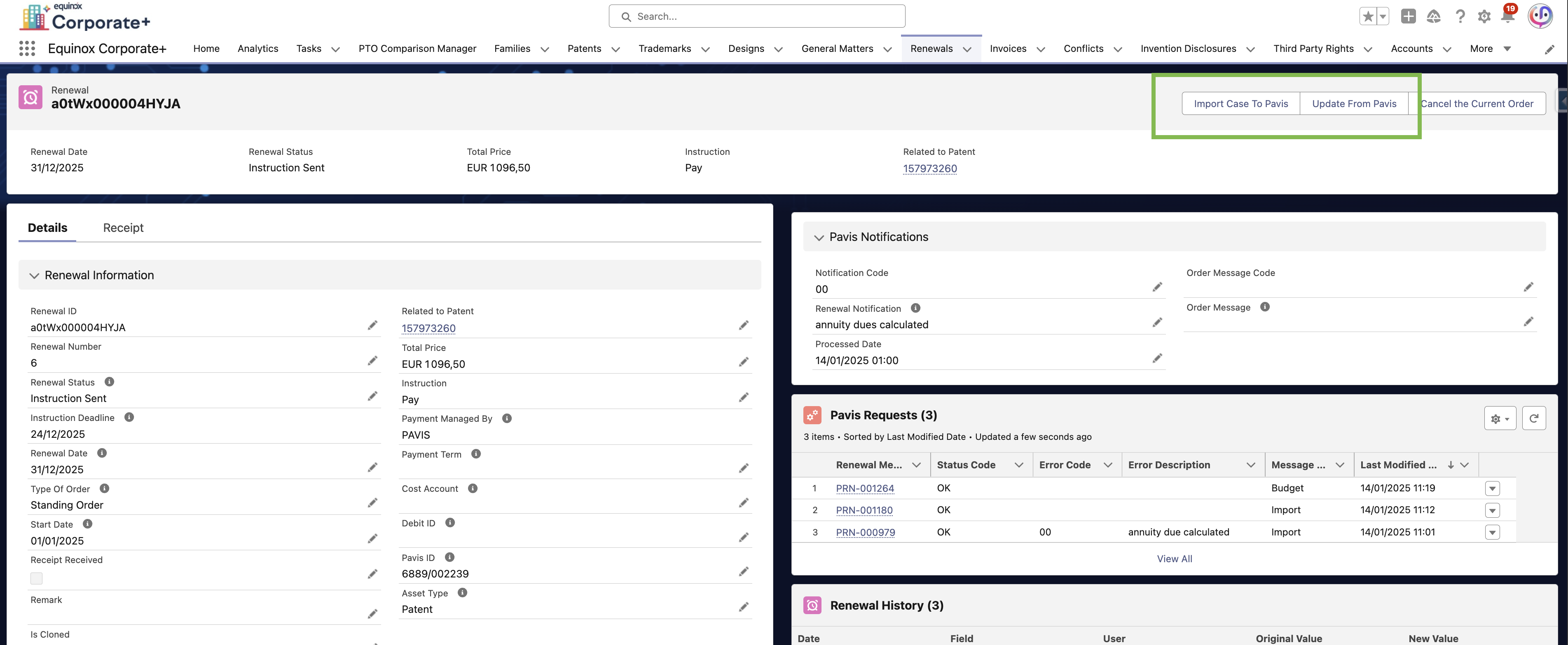 Send renewal data to Pavis
