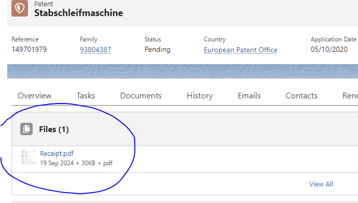 - The official payment receipt (PDF) is downloaded from Pavis and attached automatically in two places: - Under the Renewal record in Salesforce Files